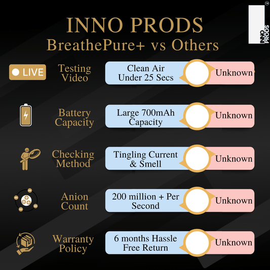 Inno Prods Filter Free Portable Air Purifier | CE & ROHS Certified | PM2.5, Dust, Smoke, Allergens for Home, Office, Car
